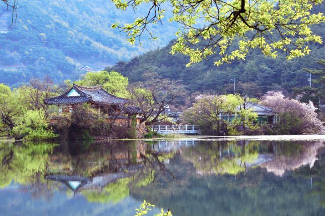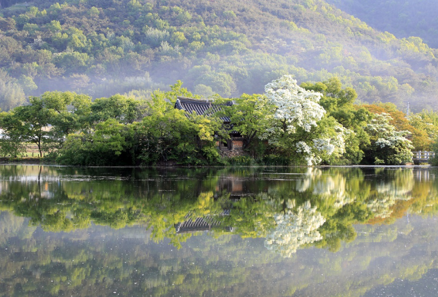 영남루와 함께 빼놓을 수 없는 명소는 바로 위양지입니다. 위양지는 고려 시대 때 처음 조성된 인공 연못으로, 조선 시대에 이르러 지금의 모습을 갖추었습니다. 연못 가운데에는 오리나무 숲이 작은 섬처럼 자리 잡고 있으며, 그 위에 세워진 정자가 연못과 어우러져 한 폭의 수묵화를 연상시킵니다. 특히 가을 단풍과 봄 벚꽃이 어우러진 위양지의 풍경은 한국 전통 정원의 아름다움을 잘 보여줍니다. 위양지는 단순한 연못이 아니라, 자연과 건축이 조화를 이룬 한국적 미학의 결정체입니다.