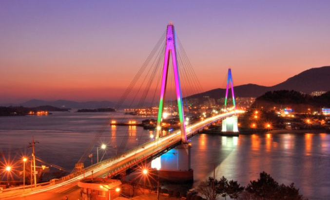 1984년에 개통된 돌산대교는 여수 시내와 돌산도를 연결하는 다리로, 길이 450m, 폭 11.7m의 웅장한 규모를 자랑합니다. 다리 위를 지나는 차량뿐만 아니라, 도보로도 걸을 수 있어 야경을 즐기기에 제격입니다. 저녁이 되면 다리에 조명이 켜져, 바다 위에 빛의 터널이 만들어집니다. 다리 위에서 바라보는 여수 시내와 밤바다는 여수 여행의 하이라이트라 할 수 있습니다.