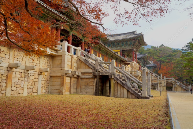 불국사 경내로 들어서면 가장 먼저 눈에 띄는 것이 바로 청운교와 백운교입니다. 돌로 만든 이 계단은 인간의 세계에서 불국정토로 올라가는 길을 상징합니다. 석축 위에 정교하게 쌓아 올린 구조는 오늘날에도 감탄을 자아내며, 건축학적으로도 큰 가치를 지닙니다. 여행자는 청운교와 백운교를 오르며 단순한 건축물이 아닌, 종교적 의미와 철학이 담긴 길을 걷게 됩니다.