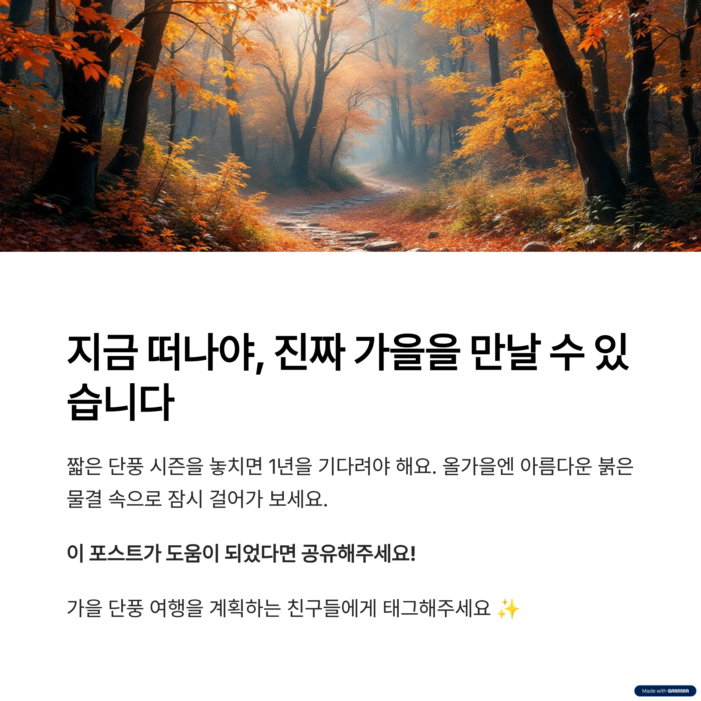 지금 아니면 또 1년 기다려야 해요! 가을 단풍 절정 시기, 어딜 가야 후회 없을까?