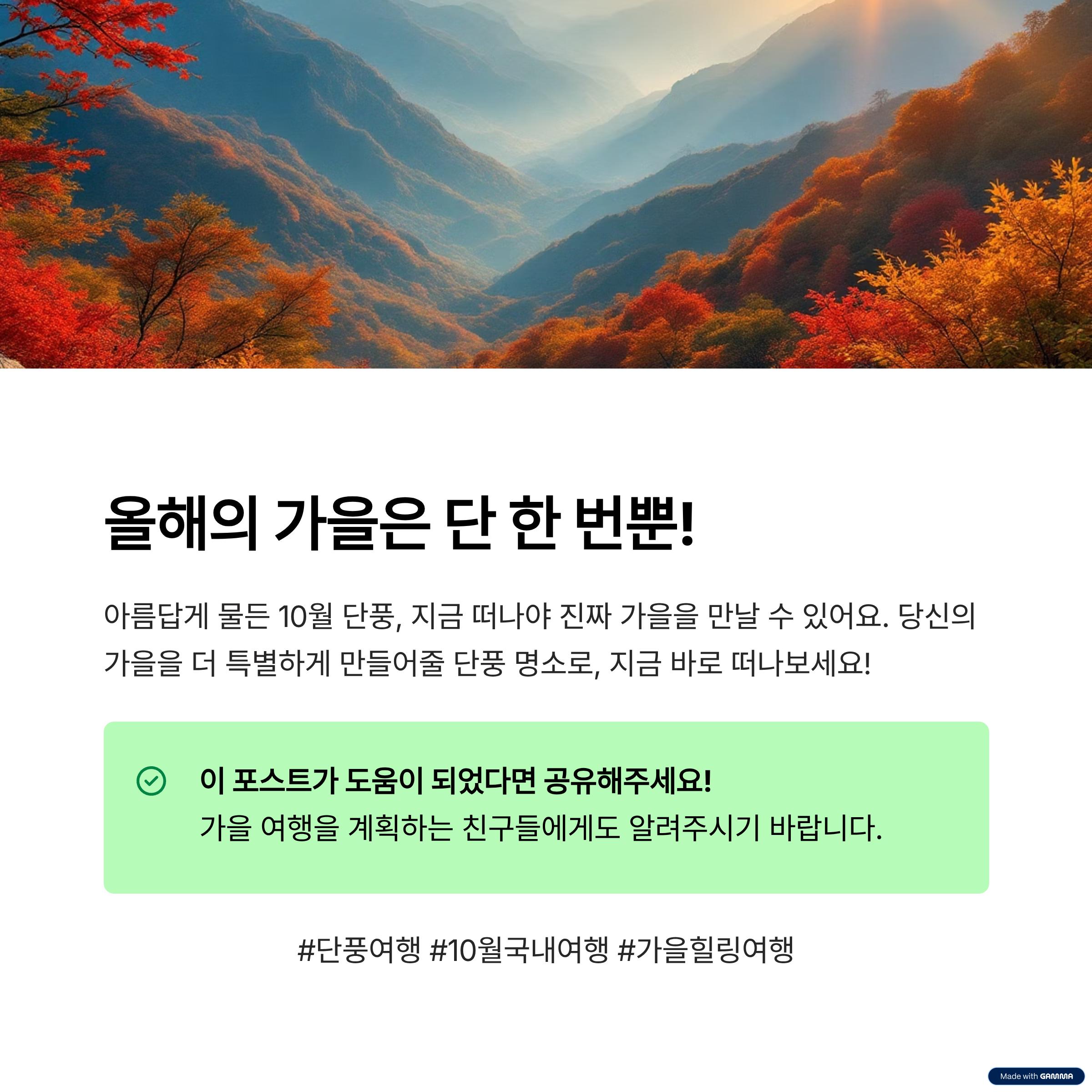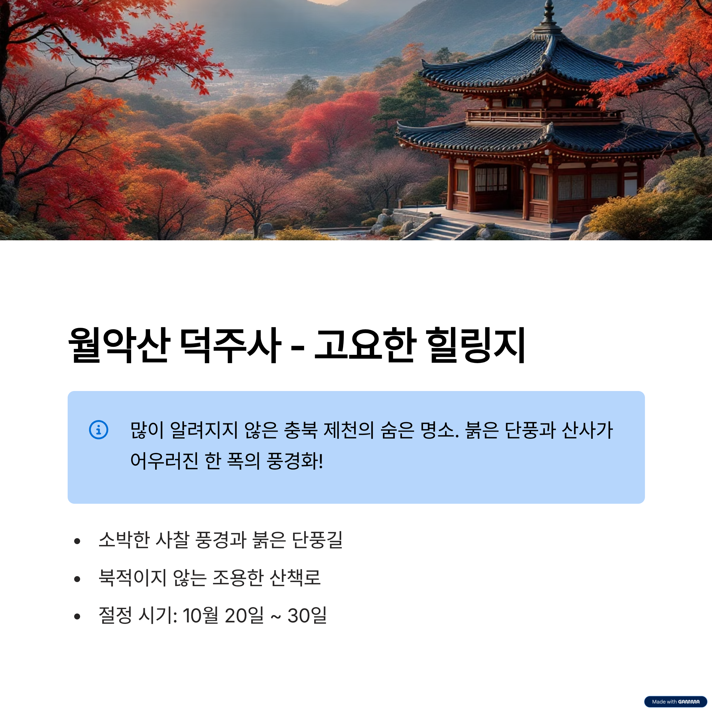당신의 가을을 더 특별하게 만들어줄 단풍 명소로, 지금 바로 떠나보세요!