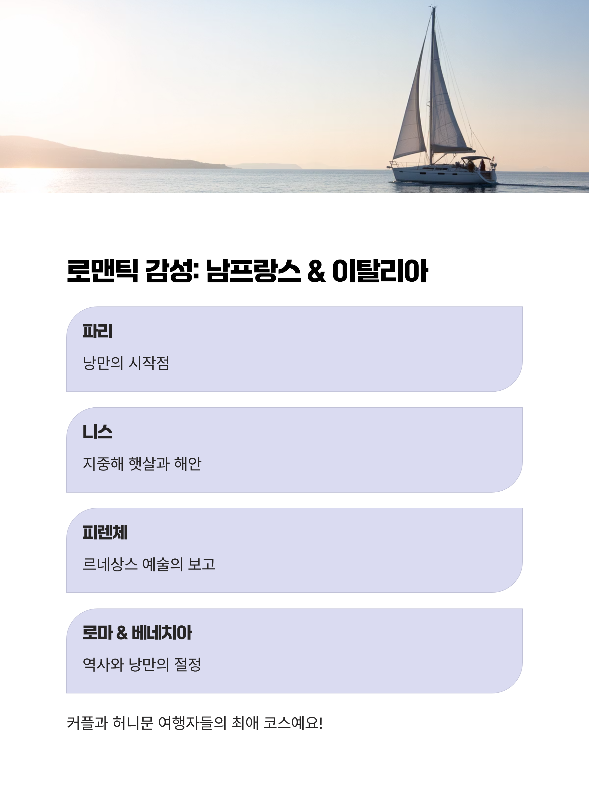 2. 로맨틱 감성 여행 루트 – 남프랑스 & 이탈리아