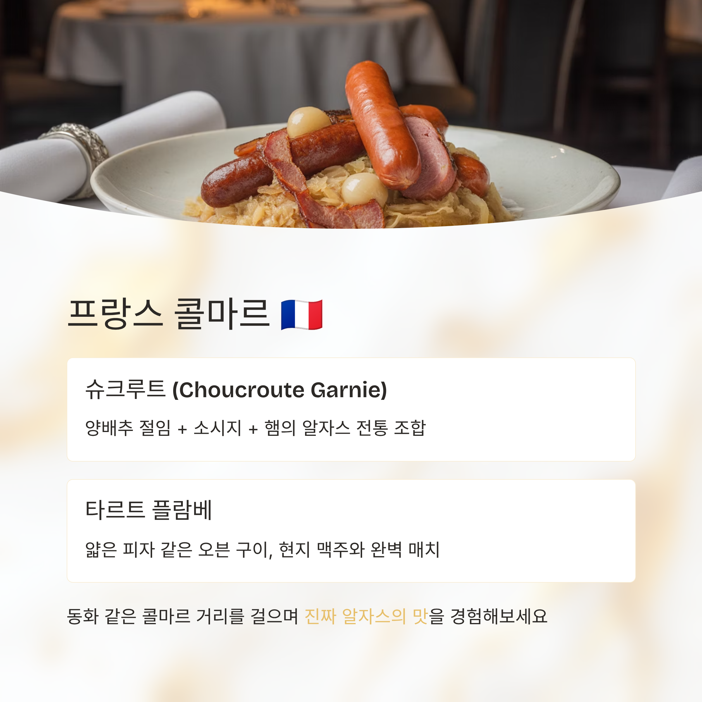 👉 팁: 알자스 음식은 독일 영향이 강해, 프랑스 남부와는 전혀 다른 매력을 느낄 수 있습니다.