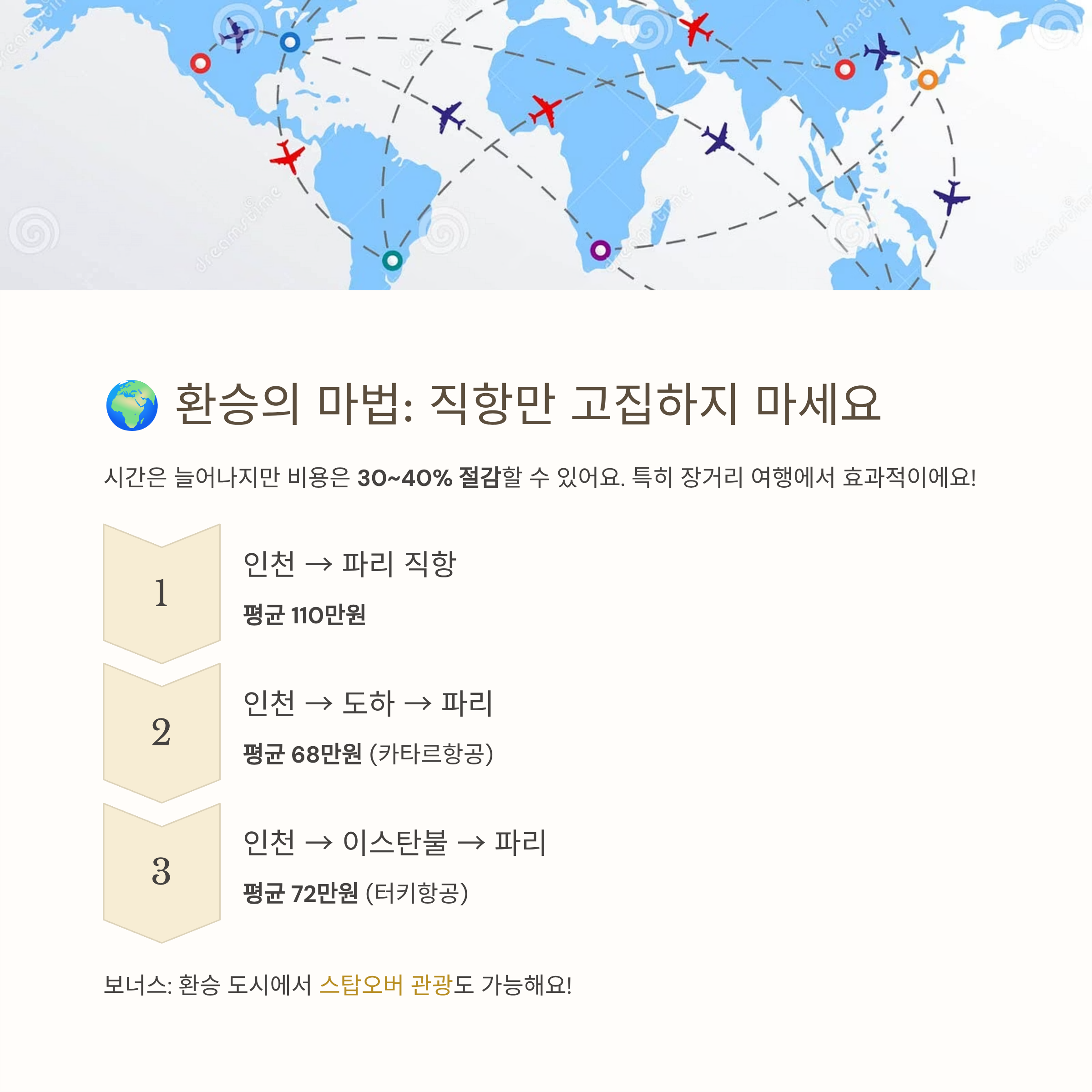 🌍 4. 직항만 고집하지 마라, 환승 노선의 마법