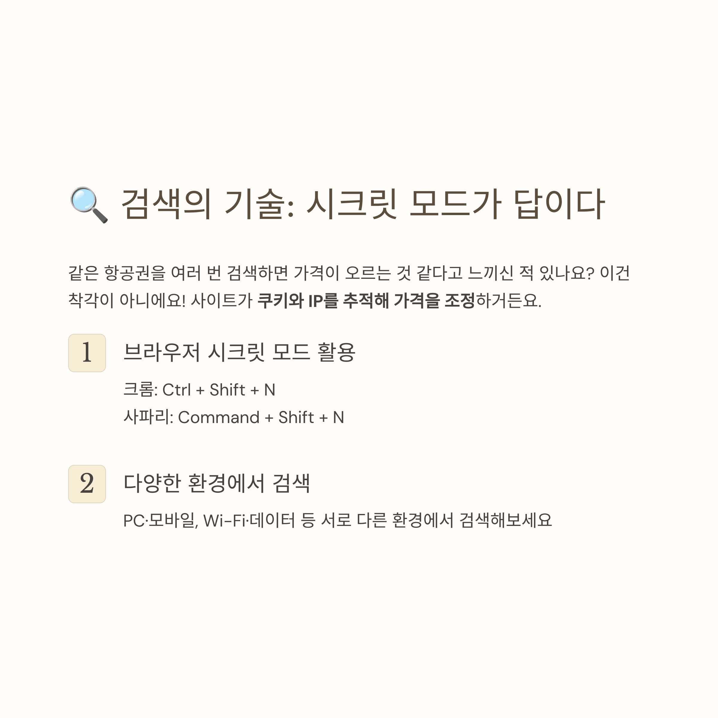 | 시크릿 모드 검색 | 가격 인상 방지 | 브라우저 익명 창 활용 |