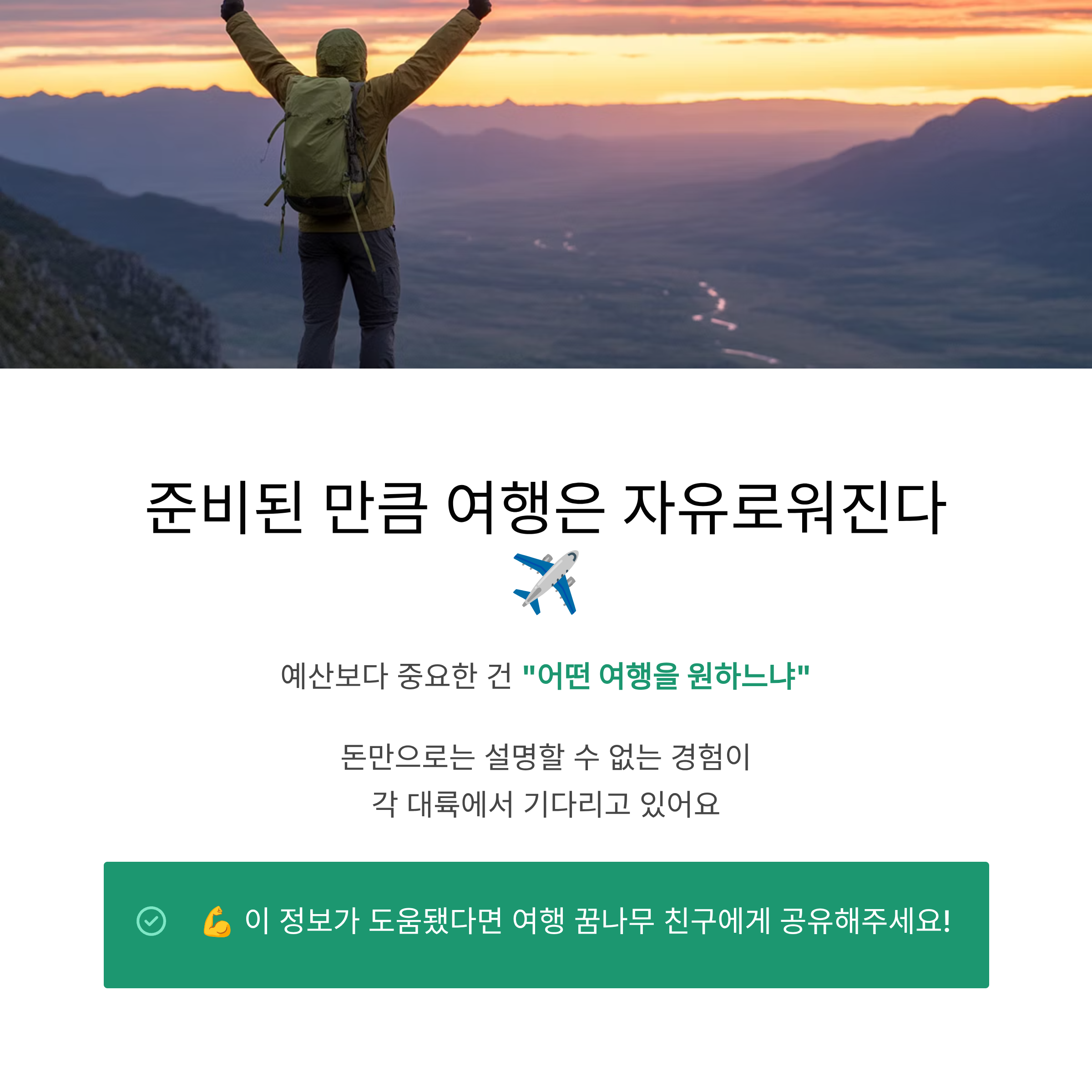 결국 중요한 건 **“내가 어떤 여행을 원하느냐”**입니다. 돈만으로는 설명할 수 없는 경험이 각 대륙마다 기다리고 있으니까요.